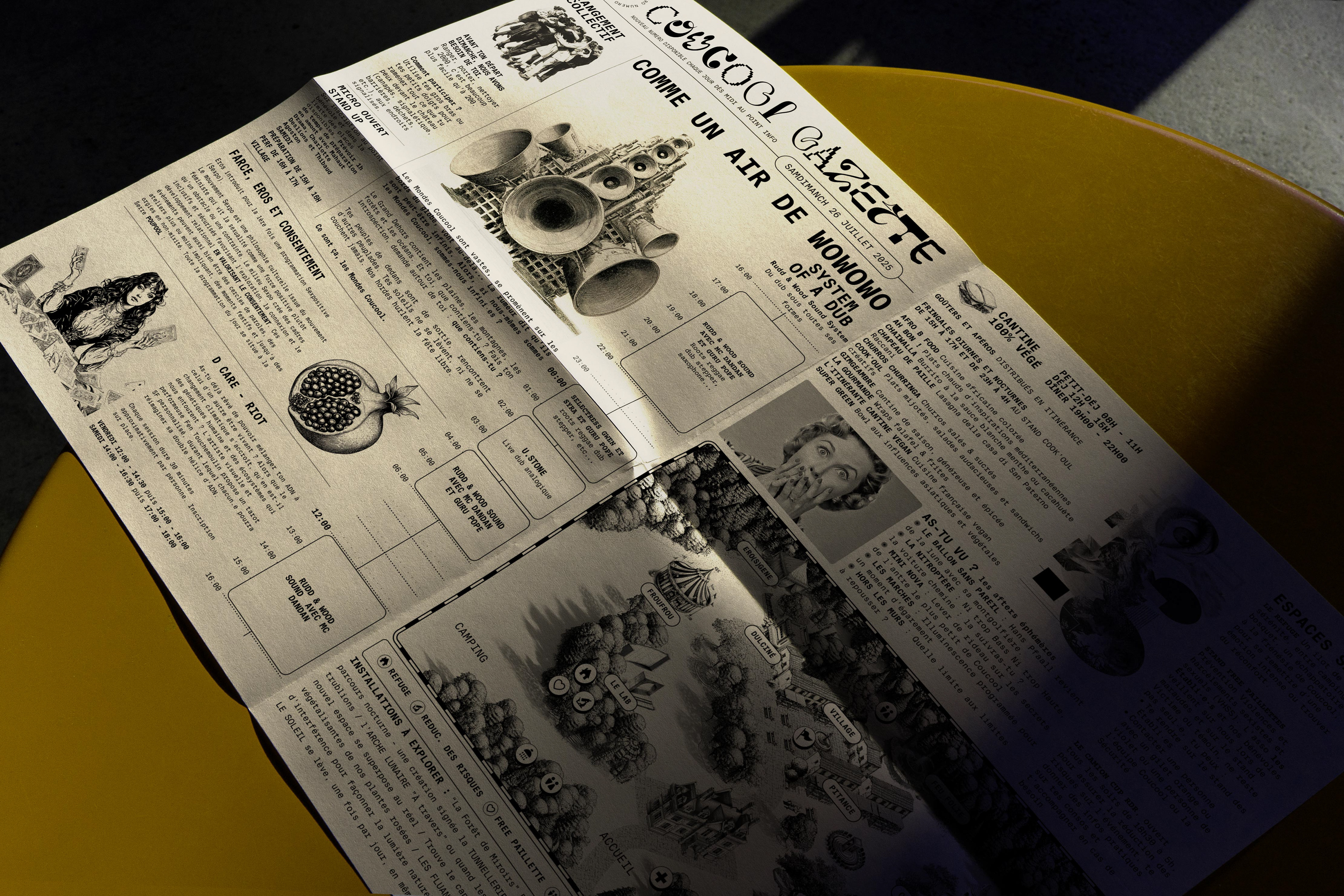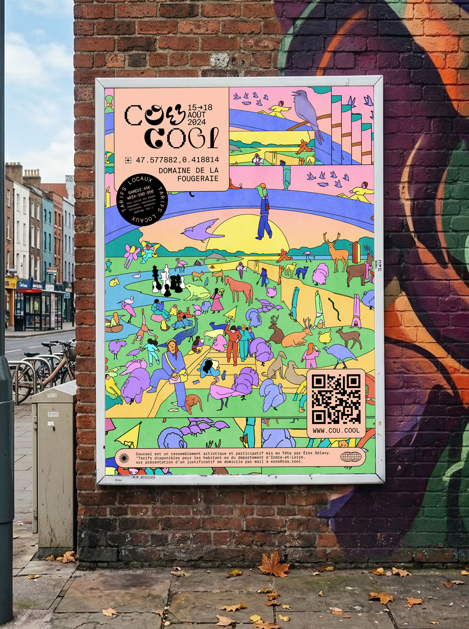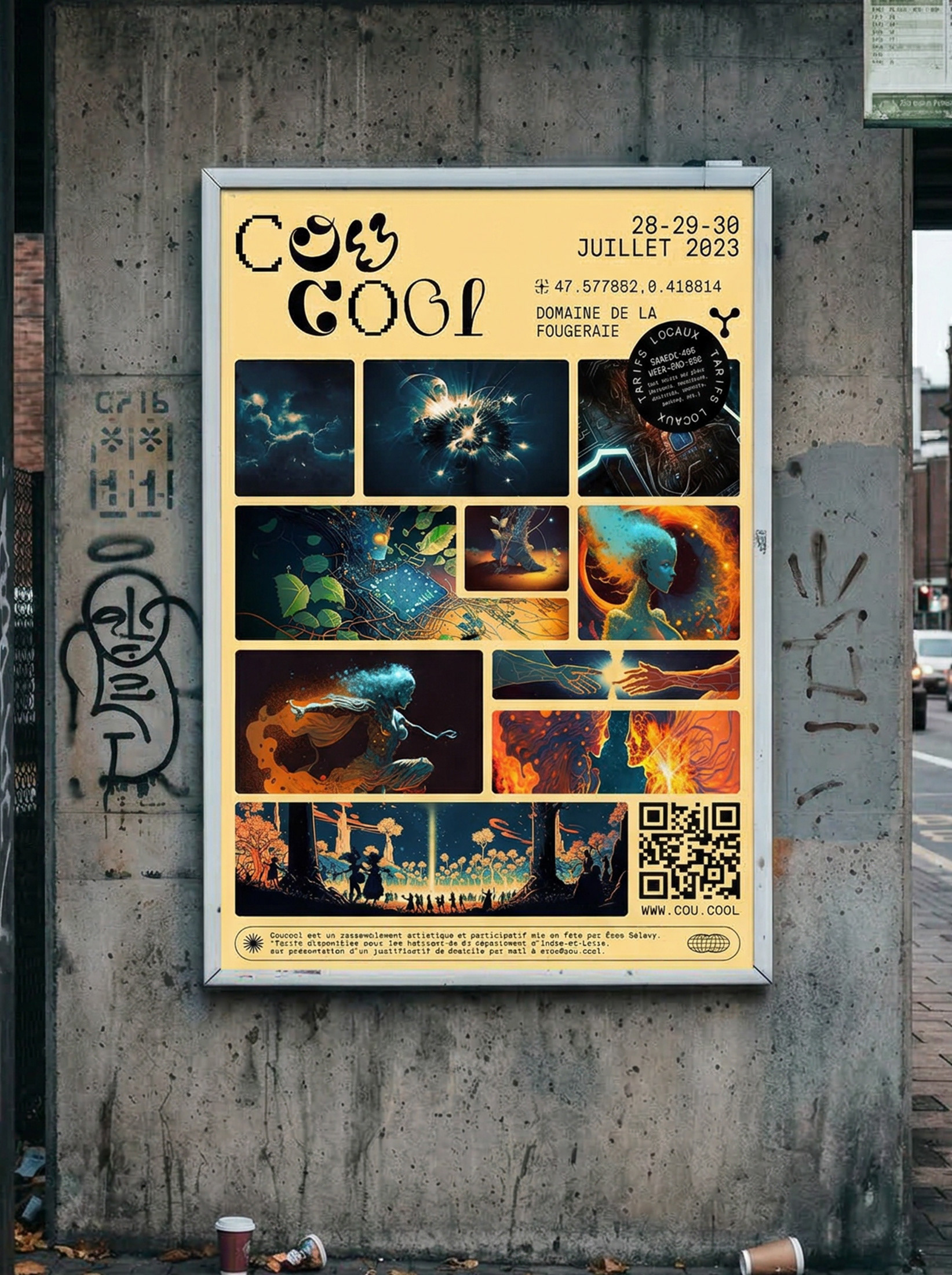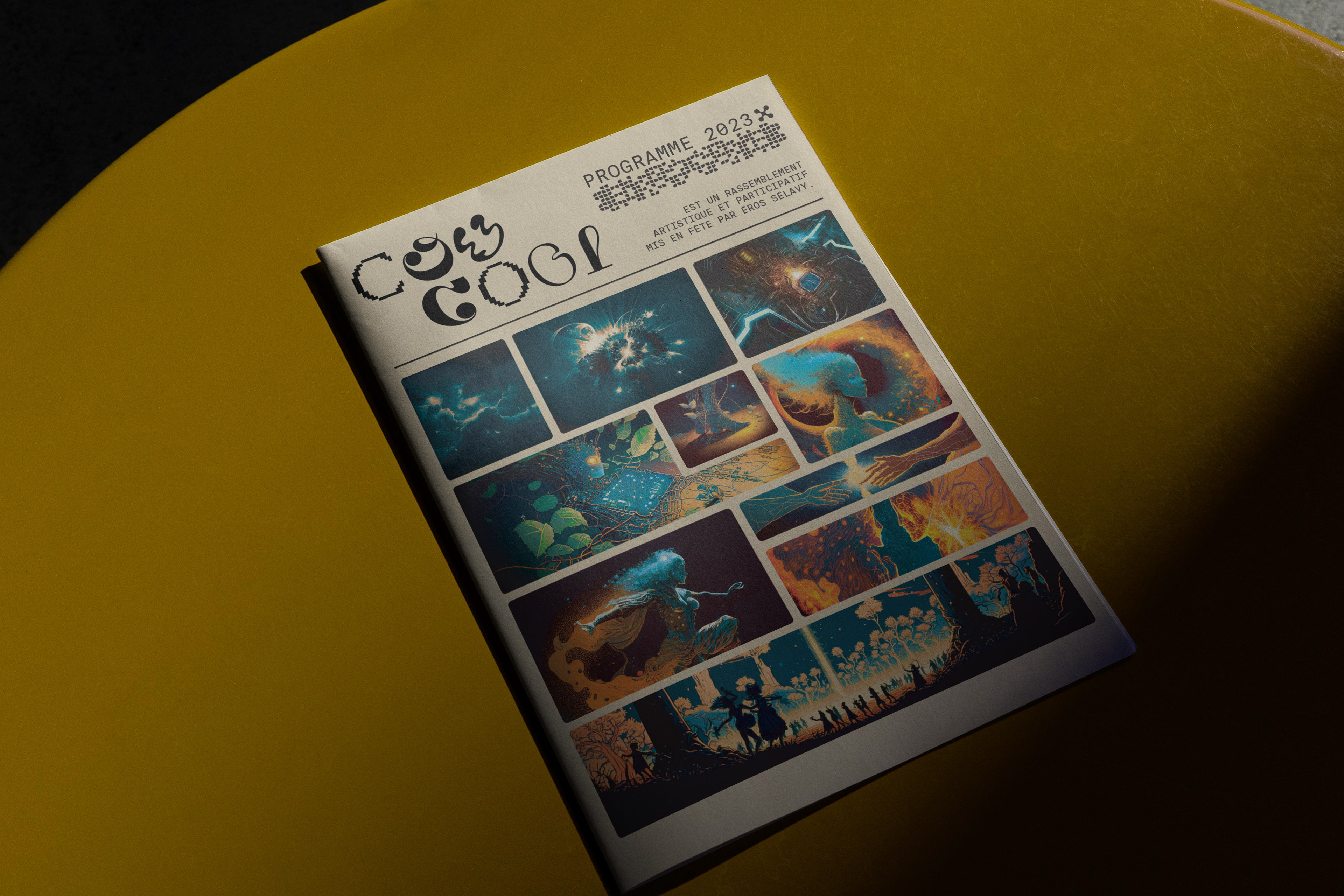 Coucool is an annnual art and music gathering standing in France and organised by a group of counterculture enthusiasts (wich I am part of). In 2023, We have chosen to focus our theme on artificial intelligence: To what extent can A.I. become human? Will it be able to experience emotions? Feel love, joy, or even compassion? These are the questions we wanted participants of the 2023 edition of Coucool to ponder as they embarked on this 'choose-your-own-adventure' to acquire their tickets.
